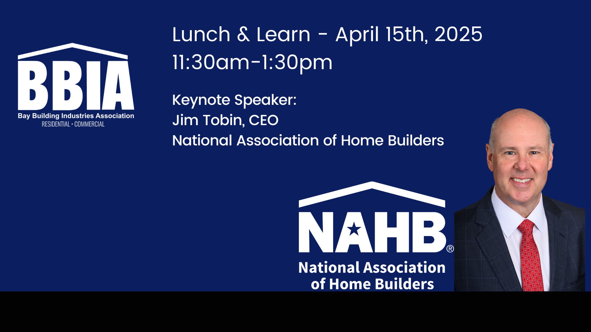 Our keynote speaker, Jim Tobin, CEO of National Association of Home Builders will be joining us.
